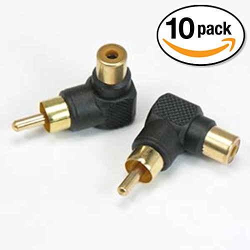 -. Title : InstallerParts (10 Pack) RCA Male / Female Right Angle Adapter – Black – Gold-Plated