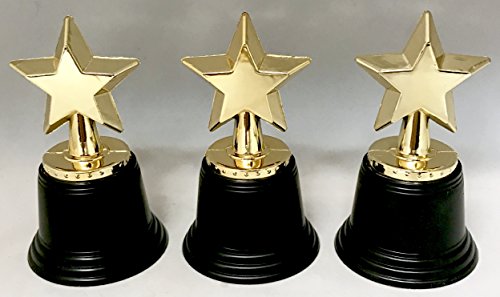 24 Party Favor or Awards Plastic Star Trophies Gold Color 4.5" Tall