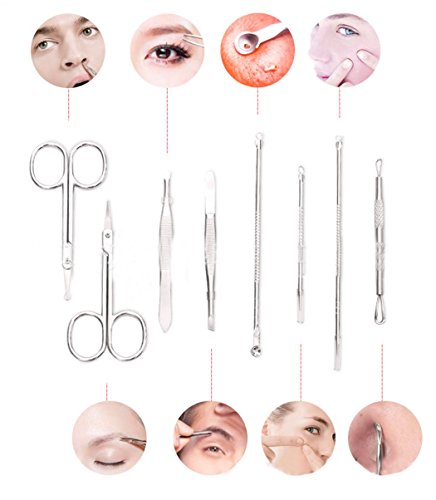 - There are some different types of acne needles ,Eyebrow scissors, eyebrow clip and nose hair trimmer . Acne needles is used to remove the acne according to different size acnes . Eyebrow scissors and eyebrow clip is used to trim off the excess eyebrows. Nose hair trimmer is used to cut excess nose hair.