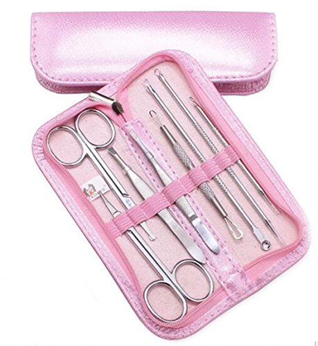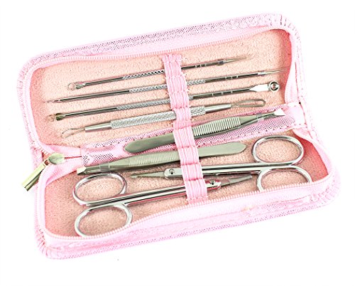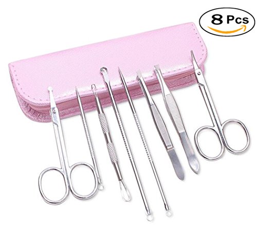 Xiaoyu 8 in 1 Multifunctional Stainless Steel Blackhead Pimple Extractor Acne Removal Tool, Eyebrow Nose Hair Trimming Tool, Safe Acne Needle Set Blackhead Remover Kit