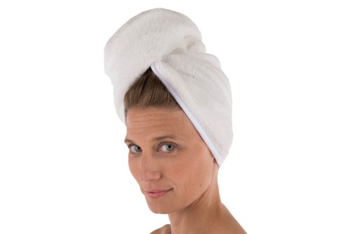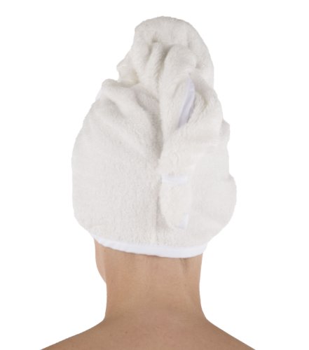 - Two-pack of head wraps. Dries hair faster to cut down on blow drying without the frizz. Features elastic loop to secure hair towel in place and give flexibility to fit all sizes. Length: 25 inches and width: 12 inches
