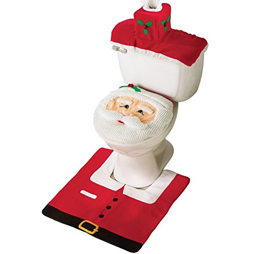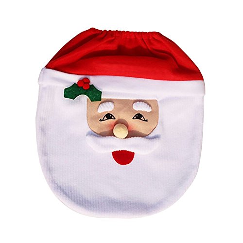 -. Brand : Huoyun -. Feature : Great addition to boost up your holiday spirit / Material: Non-woven Fabric / Toilet Seat Cover Size: / Rug Size: / The toilet rug has an anti-slippery rubber back -. Label : Huoyun -. Manufacturer : Huoyun -. ProductGroup : Home -. ProductTypeName : HOME_BED_AND_BATH -. Publisher : Huoyun -. Studio : Huoyun -. Title : Christmas Decorations Santa and Snowman Toilet Seat Cover and Rug Set