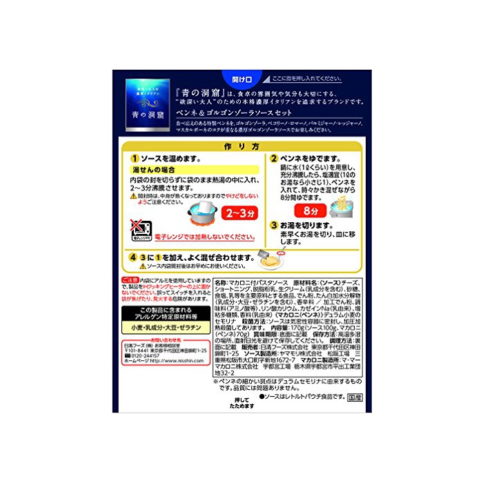 원본상품명: の洞窟 ペンネ&ゴルゴンゾラソスセット 170g×4個