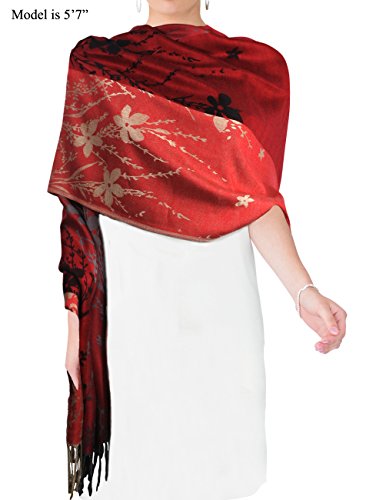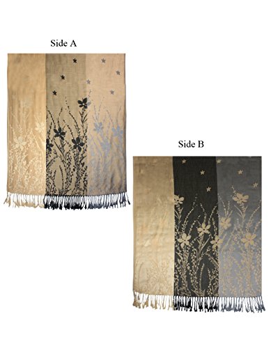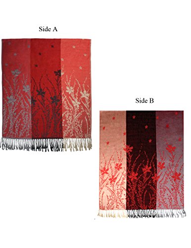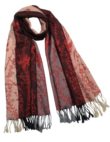 Binding : Apparel Product Description Carefree soft and medium weight rayon long scarf with elegant wild flower pattern printed on triple color background. The scarf measures 27" W x 71" L w Fringes (65" L w/o Fringes). Put on this silky scarf and instantly create an effortless and refined look. Pair the scarf up with a monochromatic sweater to let the design speak for itself. This medium weight long scarf shawl is great for dressing up any outfit during Fall and Winter and suited for both formal and casual. And it also makes a great gift for your friends and loved ones. Made with high quality rayon, it's breathable and easy to take care. Available in 5 colors: Red, Blue, Violet, Tan, and Gray. Machine or hand wash. 0