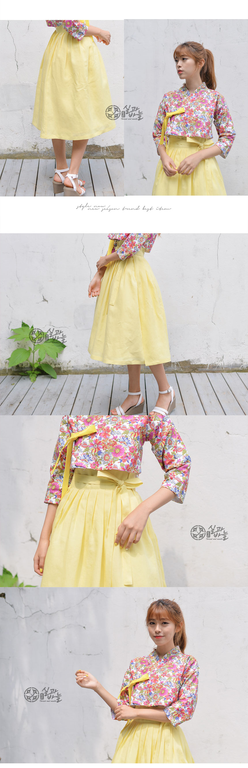 -아망딘화이트 저고리의 고름은 한복지 원단으로 제작되어 포인트를 주었고, 한복의 느낌을 살렸습니다.