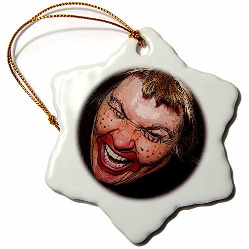 3dRose orn_49539_1 Lady Dressed Up Like Ugly Clown for Halloween with Her Face Very Animated Silly and Scary Snowflake Decorative Hanging Ornament, Porcelain, 3-Inch