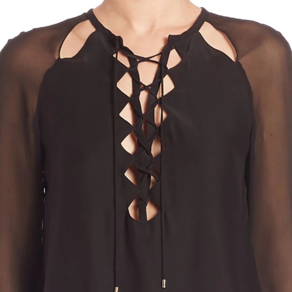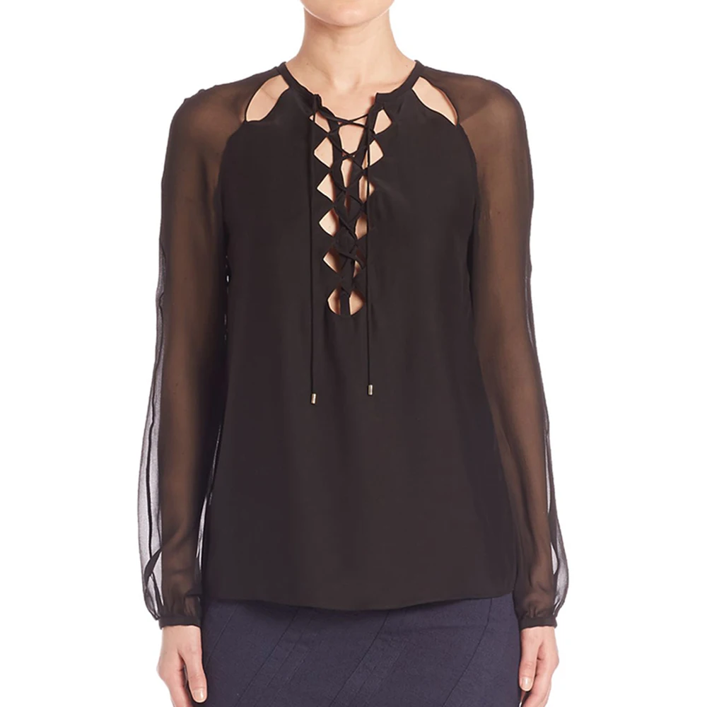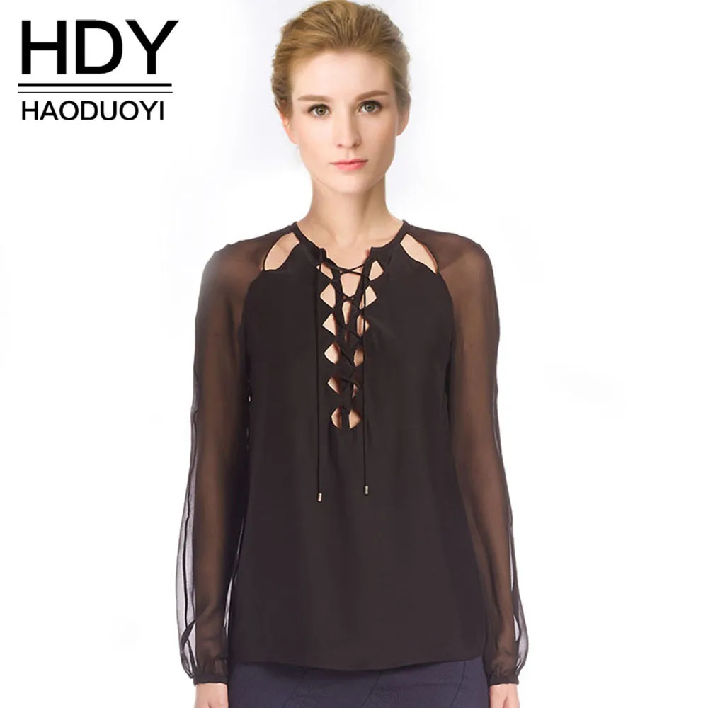 | HDY Haoduoyi Fashion Women Tops Tie Front V Neck Long Sleeve Sheer Shirts Slim Solid Color Brief Style Soft Female Blouses Women | |||||||||||||||||||||||||||||||||||||||