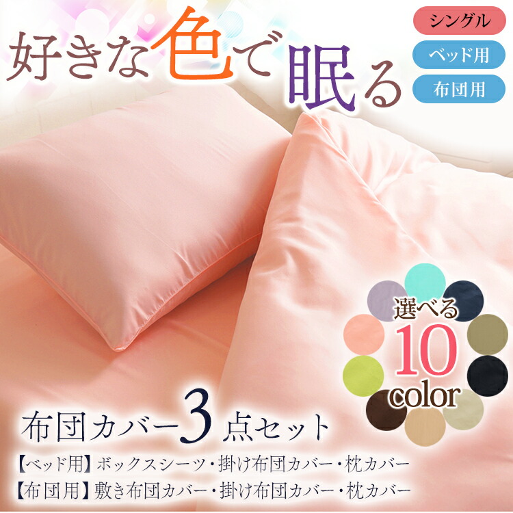掛布団カバー×1枚、敷布団カバー(BOXシーツ)×1枚、枕カバー×1枚のセット!