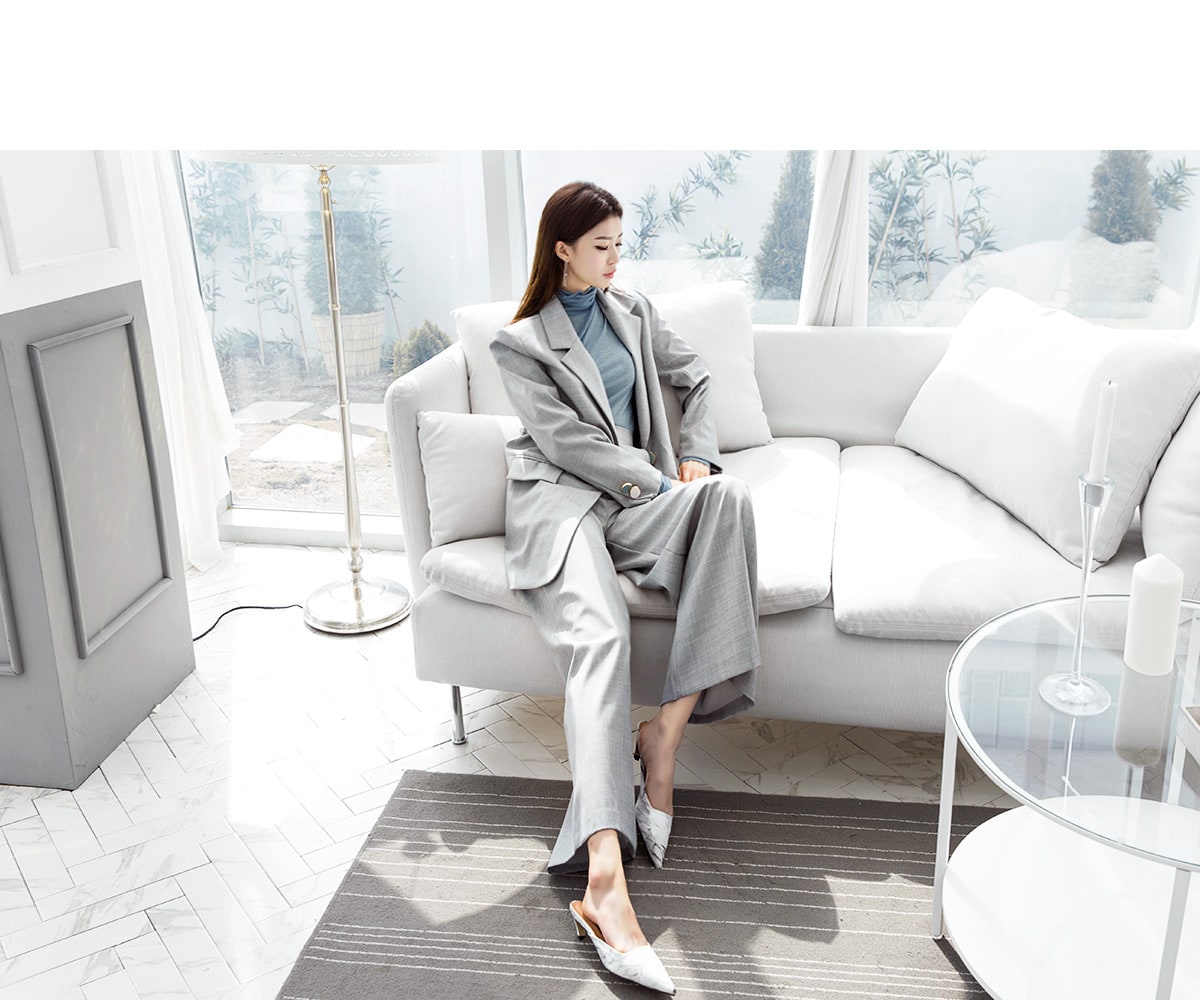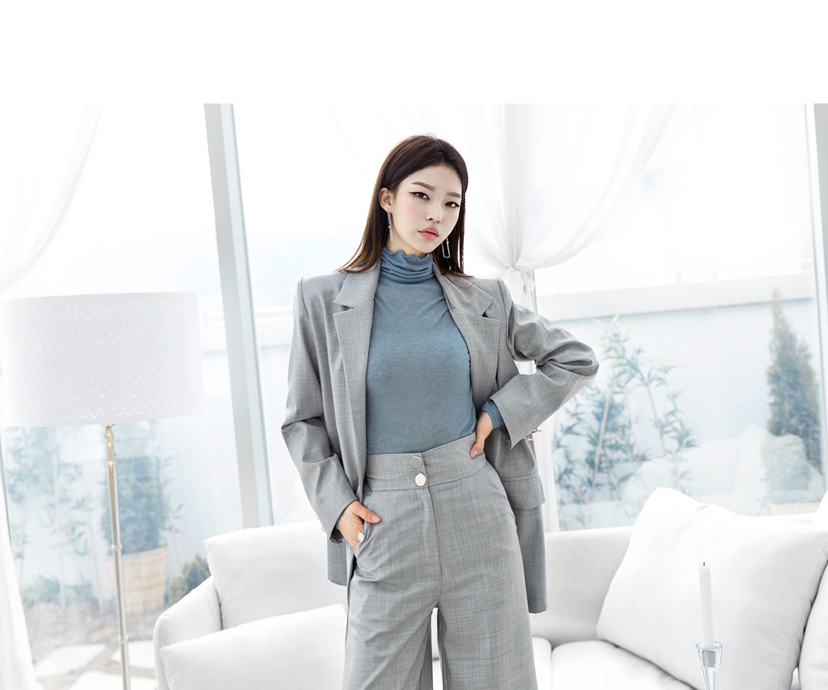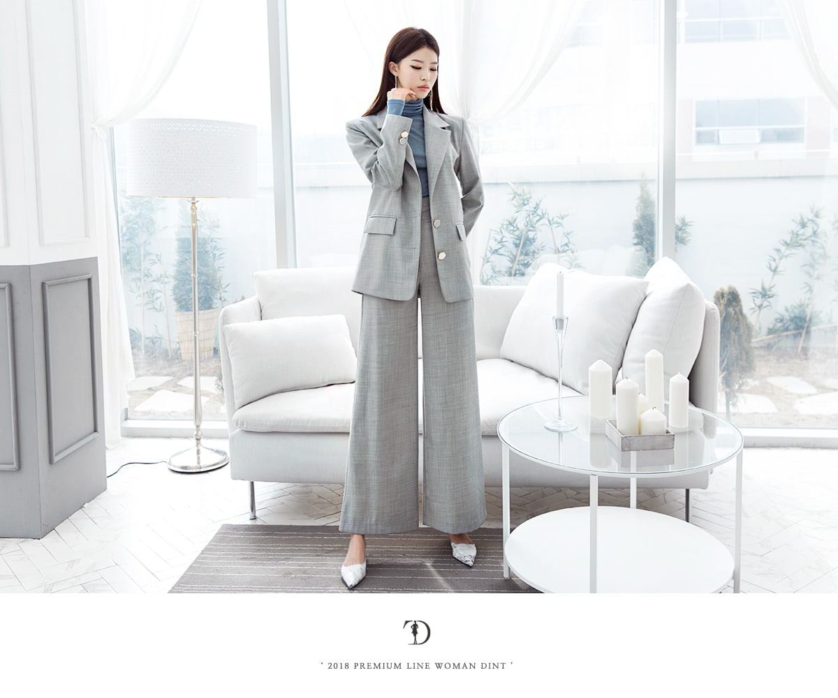P1831 비쥬 컬러 버튼 와이드 팬츠 Gray