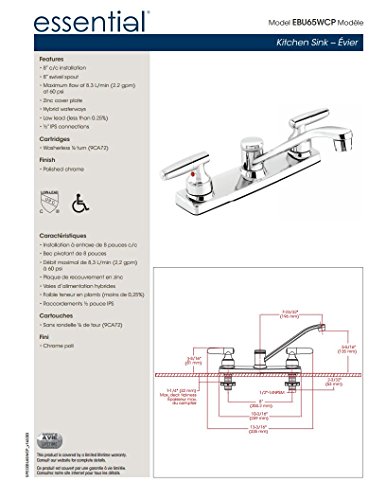 Belanger EBU65WCP Kitchen Sink Faucet with Low-Arc Spout and 2-Handles, Polished Chrome