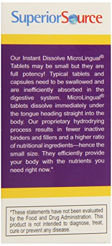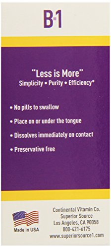 -. Binding : Health and Beauty -. Brand : Superior Source -. EAN : 0076635905102 -. Feature : Our instant dissolve micro lingual tablets go to work fast, under the tongue / May also be swallowed as you would a regular tablet / Thiamine also promotes normal growth and development as well as assisting in maintaining proper heart, nervous system and digestive system function -. IsAdultProduct : 0 -. Label : Superior Source -. Manufacturer : Superior Source -. MPN : B003AVIU9Y -. NumberOfItems : 1 -. PackageQuantity : 1 -. PartNumber : B003AVIU9Y -. ProductGroup : Health and Beauty -. ProductTypeName : HEALTH_PERSONAL_CARE -. PublicationDate : 2013-03-30 -. Publisher : Superior Source -. ReleaseDate : 2013-04-09 -. Size : 100 -. Studio : Superior Source -. Title : Superior Source Vitamin B1, 100 mg, 100 Count -. UPC : 076635905102