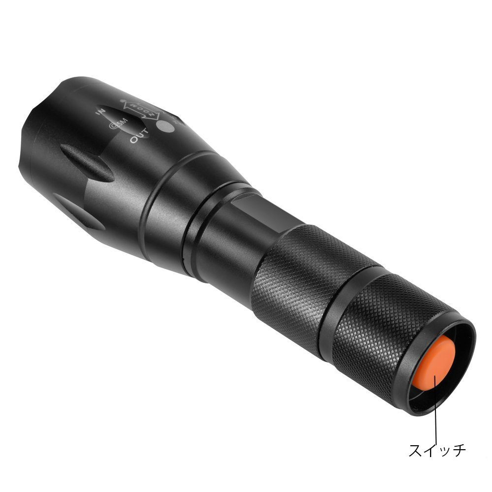 This flashlight has acquired protection class "IPX 6" against invasion of water and can withstand without adverse effect on the main body if water droplets adhere to rainwater etc. in daily life and droplets.