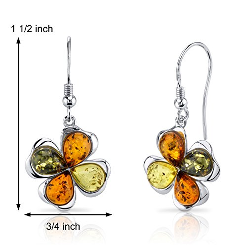 Genuine Baltic Amber, 8 pieces tear drop shape, rich cognac, olive green and honey yellow. Earrings: 3.6 grams pure 925 sterling silver, Secure Fishhook Earring Backs. Dimensions: 3/4 x 1 1/2 inch. Earrings feature exceptional design, craftsmanship and finishing. Perfect gift for Mothers Day, Birthdays, Valentines Day, Graduation, Christmas or just about any other occasion. Money Back Guarantee. Includes a Signature Gift Box. Style SE8516Feature