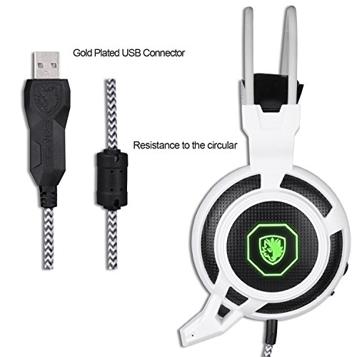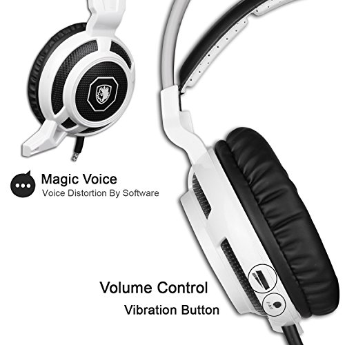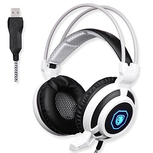 GW SADES SA905 Wired USB PC Gaming Headset Over-Ear headband Headphones with Microphone Vibration LED Lights(Black&White)