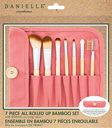 Danielle Creations Natural Bamboo 7-Piece Brush Set with Roll Up Canvas Case, Pink