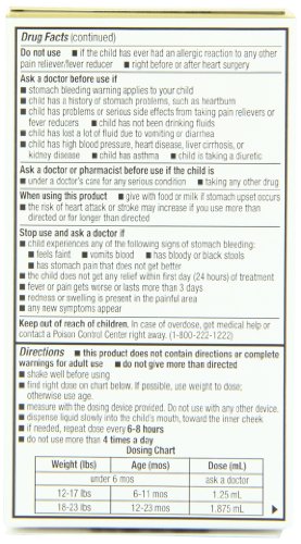 For Ages 6 mos. - 23 mos. Pain Reliever/Fever Reducer (NSAID) Alcohol Free Use only with enclosed syringe Compare to active ingredients of Motrin® Infants' Drops 100% Satisfaction Guaranteed