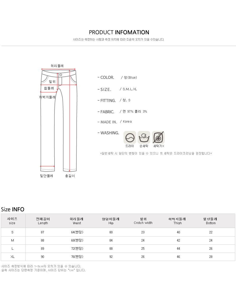 S,M,L,XL 까지 폭넓은 사이즈 준비된 스키니진!