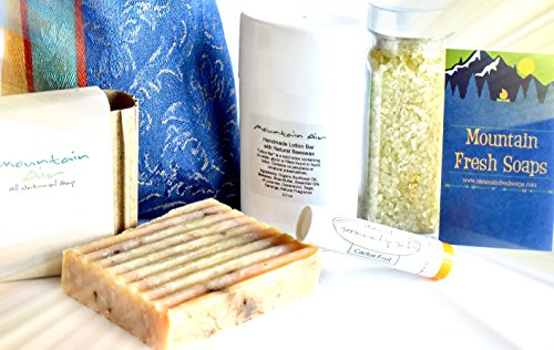 Mountain Fresh Soaps "Invigorating" GIFT SET ~ Artisan, Organic, & All-Natural Soap, Lotion, Lip Balm, & Bath Salt (Mountain Air)