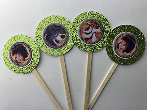 8 Jungle Book Green Cupcake Toppers Picks Birthday Party Animal Kingdom 1st First Wild Tiger Zoo