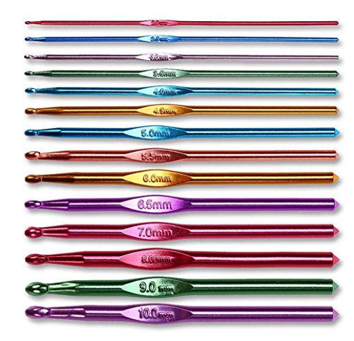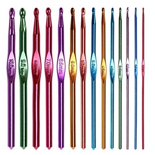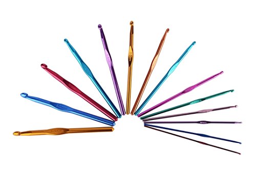 Great Gift item! Birthdays, Holidays (Basket Stuffer, Stocking Stuffer) Summer Crafts, Family Outings. Teach youth how to Crochet! Or for beginners--teaching yourself. What a great skill to know to make beautiful creations! Pictures shown of blankets are meant to inspire. No thread or yarn is included. Just the 14pc set of hooks. The Manufacturer "assorts" the Crochet Hook Colors. They may not be exactly as pictured--color wise--but all sizes will be there.