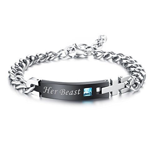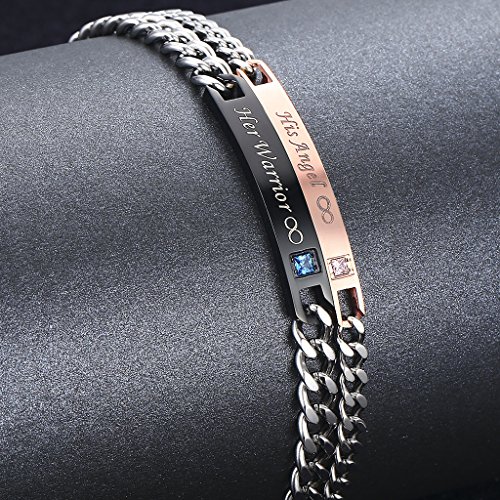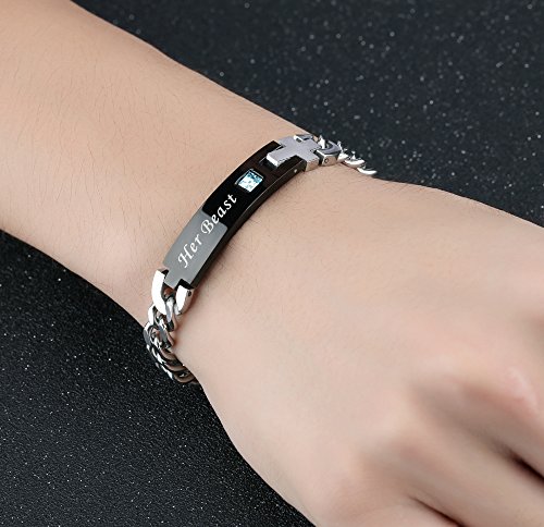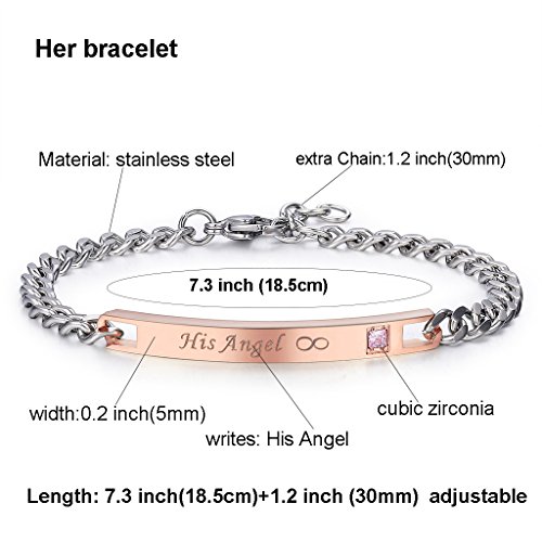-. Feature : [Material] Stainless steel metarial is hypo-allergenic,water resistant.will never turn green,anti sensitive. Use AAA cubic zirconia keep it stunning / [Length] Women: 7"(18cm)+1.2" extra chain adjustable;/ Men:8.6"(22cm)+1" extra chian adjustable / [Technic] Use smooth and mirror high polished technics,looks like amazing, not cheep looking / [Durability] Highly resistant to scratching, rusting and tarnishing,a good choice for jewelry that will be worn for a long time / [Occasion]suitable for promise/anniversary/birthday/Valentine's day/Christmas Gift with gift box