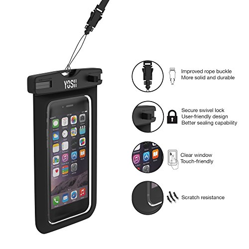 The durable YOSH® Universal Waterproof Case Bag features a strong rope buckle, a secure swivel lock, and dual-sided clear windows providing security, dependability, and ease of use. This allows you to snap photos, send texts, or respond to emails without removing your device from the case bag.