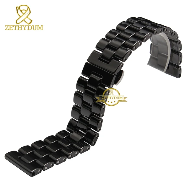 [해외]순수 세라믹 손목 팔찌 24 미리메터 화이트 블랙 시계 밴드 시계 스트랩 butterfly 버클 팔찌 벨트 시계 액세서리