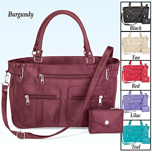 Studio : Collections Etc Publisher : Collections Etc Product Description Zippered 6 Pocket Microfiber Handbag Description Six handy pockets will easily hold everything you need, and more! Dual zip-top bag is lined and features two inner pockets perfect for cell phone and other accessories, plus four zippered pockets and a matching coin purse. Bag has dual handles and a detachable, adjustable 51"L shoulder strap. Wipe clean. Polyester; imported. 13"L x 3 1/2"W x 8 1/4"H. Available in Black, Burgundy, Lilac, Red, Tan or Teal. Material Type: Polyester No Risk Purchase, Hassle-Free Returns - 100% Satisfaction Guaranteed With customer satisfaction as our number one priority, we proudly offer a Satisfaction Guarantee for all of our merchandise and services. From our appealing merchandise and incredible values, to our friendly customer service, we strive to provide a positive shopping experience by meeting or exceeding your expectations.If you are not completely satisfied within 60 days of your purchase (see return policy for details).