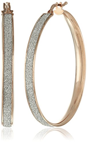 Sterling Silver Italian Rose-Tone 35mm Sparkle Hoop Earrings