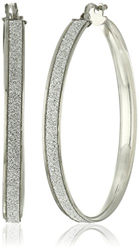 Sterling Silver Italian Rhodium Plated 35mm Sparkle Hoop Earrings