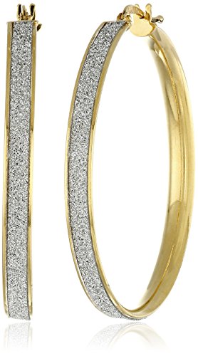 Sterling Silver Italian Gold-Tone 35mm Sparkle Hoop Earrings