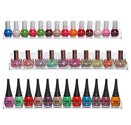Set of 3 Wall Mounted Clear Acrylic Nail Polish Floating Shelving Rack / Essential Oil Display Organizer