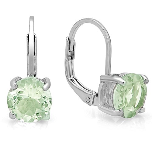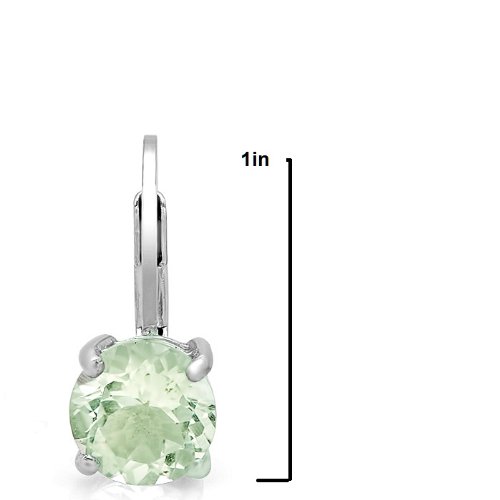 2 1/2ct total weight of green amethyst set in sterling silver leverback earrings, the stones measure 7mm in diameter and the earrings are 14mm high ( just over 1/2 inch).