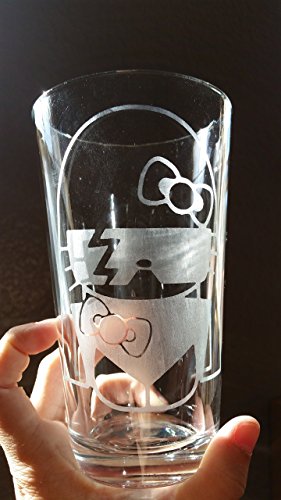 This is a hand etched Lady Gaga Hello Kitty inspired pint glass. No matter how many times you wash it, it will never fade! The glass is heat treated and dishwasher safe. This item is already made and ready to ship!