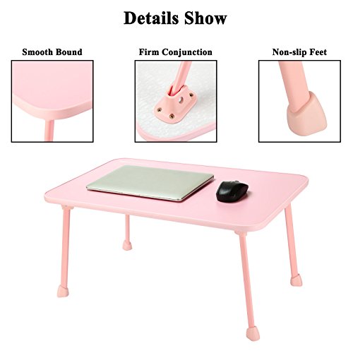 Large Bed Tray NNEWVANTE Laptop Desk Lap Desk Foldable Portable Standing Outdoor Camping Table, Breakfast Reading Tray Holder for Couch Floor Students Young Color(Pink)