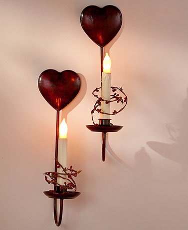 Primitive Country Home Collection - Hearts Set of 2 LED Candle Sconces