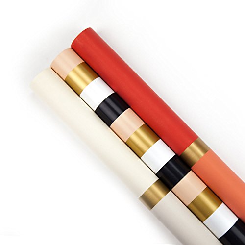 Studio : Just like Ruby Publisher : Just like Ruby Binding : Health and Beauty Product Description The gift wrap that you are looking for is here! Gold print, brilliant colors, and premium quality wrapping paper. The paper is high quality meant for easy gift coverage; will not tear or rip while wrapping! What more could you want? When you wrap your gifts in this paper it screams, "Amazing present in here!" Help your present speak. This is the perfect wedding wrapping paper roll! 3 Rolls included in this premium set: Roll 1: Mint Green, Hunter Green, Natural Melon, and Radical Red (colors separated by gold print). Roll 2: Blush, Apricot, Off White, Ivory (colors separated by gold print). Roll 3: Apricot, Gold Print, Off White, Navy Blue (repeating stripe)