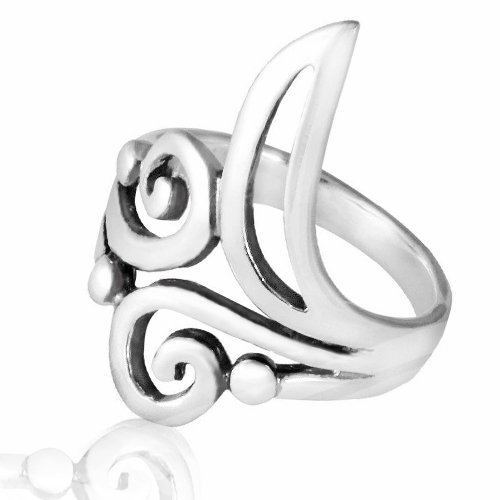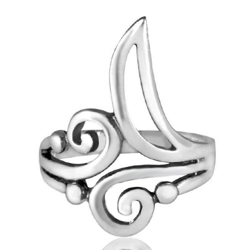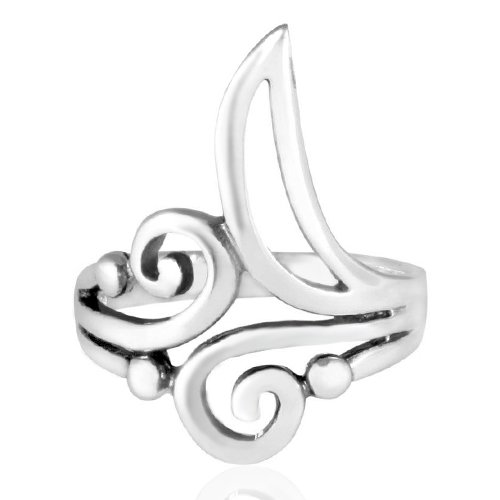 -. Title : 925 Sterling Silver Stylish Scroll Swirl and Crescent Moon Ring - Nickle Free