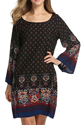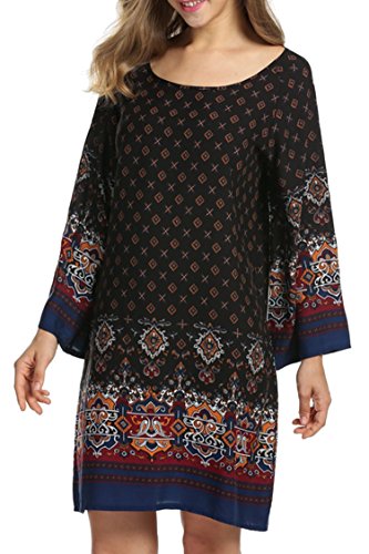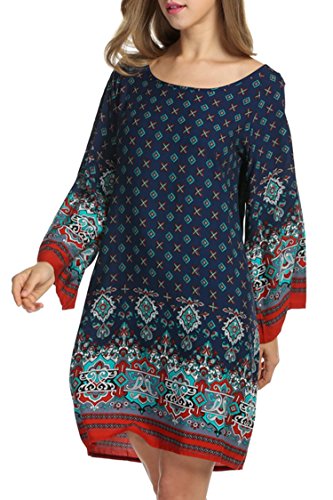 -. Title : HOTOUCH Women Bohemian Ethnic Style Loose Fit Long Sleeve P.R.Inted Tunic Dress