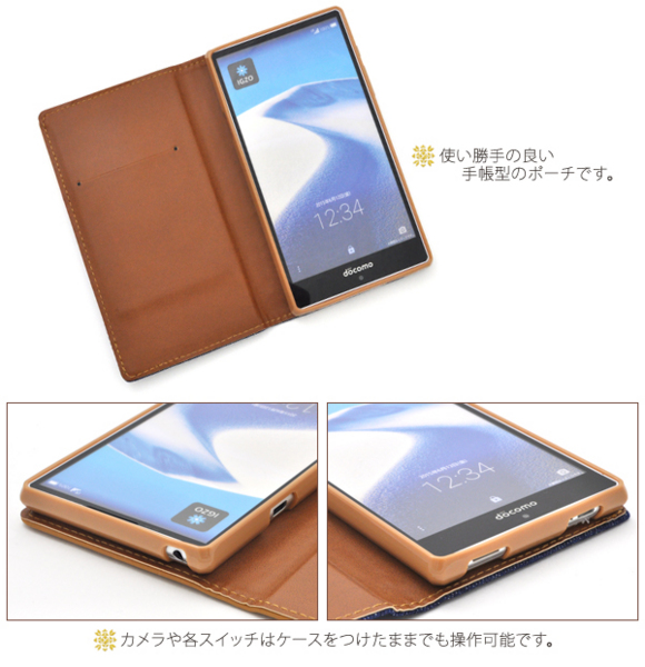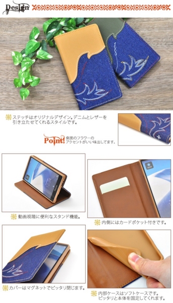 AQUOS ZETA SH-03G用のウエスタンデニムケースポーチ。