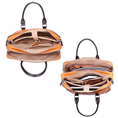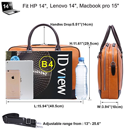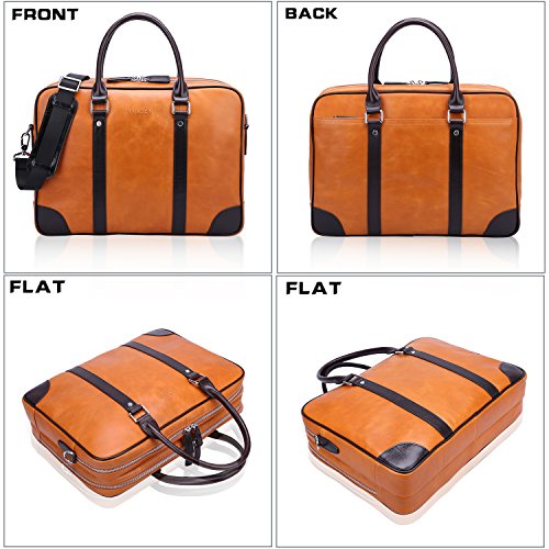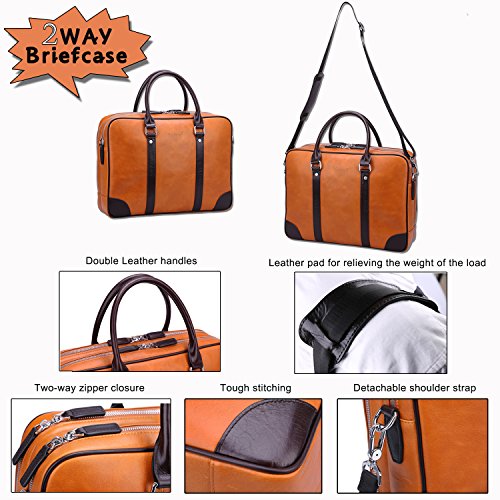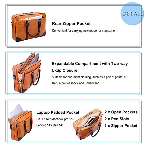 Material: Waxed oil cowhide Soft cotton poly lining Durable hardware and zipper Dimension: 16 x 4 x 11.6 inch 40.5 x 10 x 29.5 cm Color: Dark Beige Net Weight: 1.13 kg Main Feature: 2 sections enable you to organize stuffs easily.Roomy fits for 14" laptop or tablet, A4 files, books One of main section with 2-way U-zip closure, enable you to organize your overnight cloth Double handles drop able to use comfortably, an adjustable and datachable shoulder strap with pad to relieve the weight of the load. Color-patchwork briefcase mens design, able to stand by itself Exterior: 1 x rear zipper pocket Interior: 1st section 1 x 14 inch laptop padded sleeve, 1 x zipper pocket, 2 x pen slots, 2 x open pockets 2nd section Rommy enable you to organize your overnight cloth or your lunchbox Function: Used as men's tote briefcase, laptop bag, messenger bag, student/college school bag etc. Holding laptop, iPad, A4 files, cloth, mobilephone, wallet, pens, etc. Suitable for your daily life, travel and business situation. 0