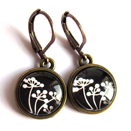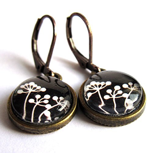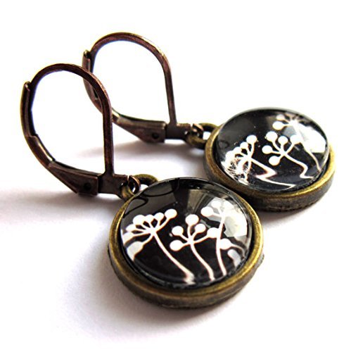 -. Brand : Gimme That Thing -. Color : Black -. Department : Women -. ProductGroup : Guild Product -. ProductTypeName : GUILD_JEWELRY -. Title : Black and White Parsley Flower Earrings - Glass and Metal Nickel and Lead Free Sensitive Skin by Gimme That Thing