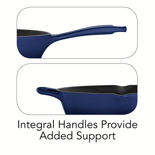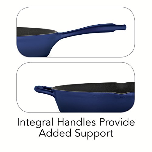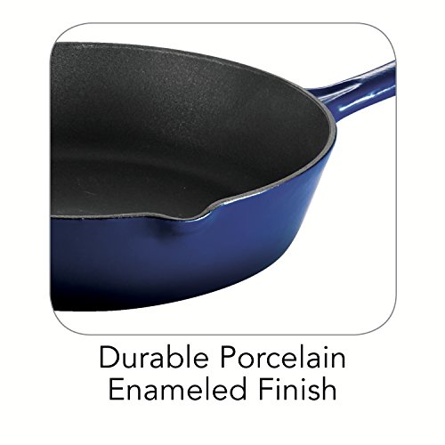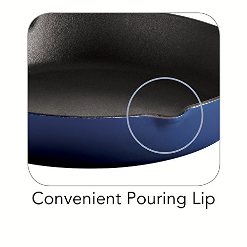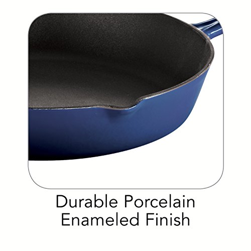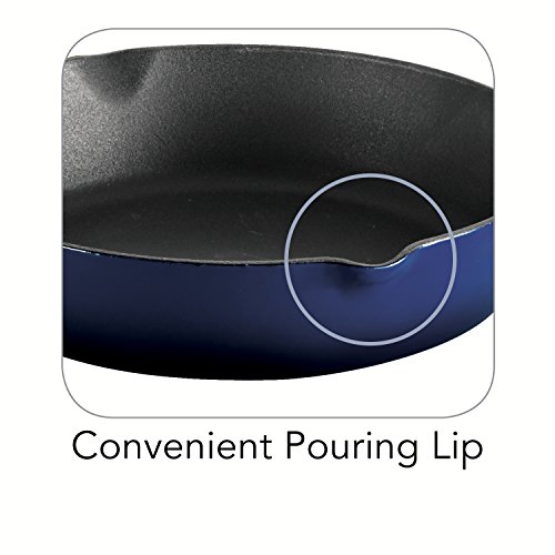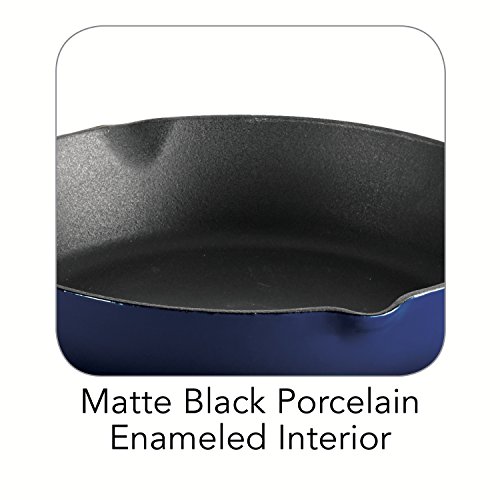 -. Brand : Tramontina -. Feature : Cobalt blue enameled cast iron construction for even heating / Matte black porcelain enameled interior with ribbed surface / Equipped with convenient handles and 2 pouring lips / Oven-safe up to 450 degrees F; hand-wash only / Your choice of size -. Label : Tramontina USA Inc. -. Manufacturer : Tramontina USA Inc. -. MPN : 80131/065DS -. PackageQuantity : 1 -. PartNumber : 80131/065DS -. ProductGroup : Kitchen -. ProductTypeName : KITCHEN -. Publisher : Tramontina USA Inc. -. Studio : Tramontina USA Inc. -. Title : Tramontina Gourmet Enameled Cast Iron Skillet - Gradated Cobalt