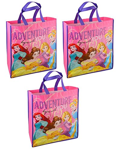 Disney Princess Adventure Large 15.5-inch Reusable Shopping Tote or Gift Bag, 3-Pack