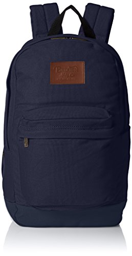 The basin is a cotton canvas backpack featuring padded shoulder straps, a laptop compartment, and custom Brixton zipper pulls, snaps, and leather labels.