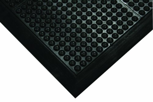 Wearwell Natural Rubber 454 OrthoSand Medium Duty Anti-Fatigue Mat, Safety Beveled Integral Molded Border Edges, for Dry Areas, 2' Width x 3' Length x 1/2" Thickness, Black