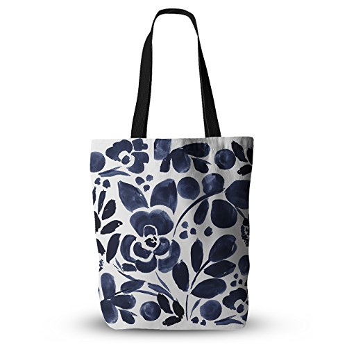 KESS InHouse Crystal Walen "Watercolor Floral"-Navy Painting Everything Tote Bag, 18" x 18", Multicolor