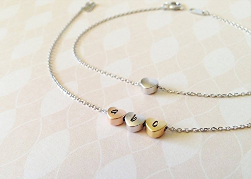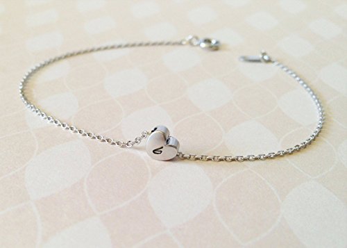 -. Title : Cute Initial Silver Heart Charm Bracelet in silver Chain, Initial Bracelet, Personalized Dainty Heart Bracelet
