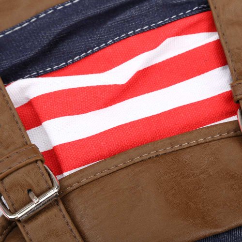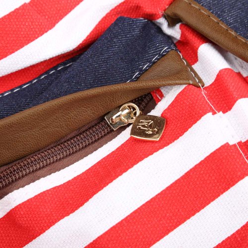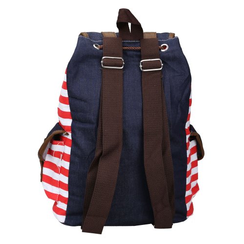 -. Title : Tenflyer Strip Canvas Casual Bag Backpack Satchel for Women Men Red