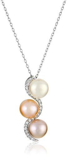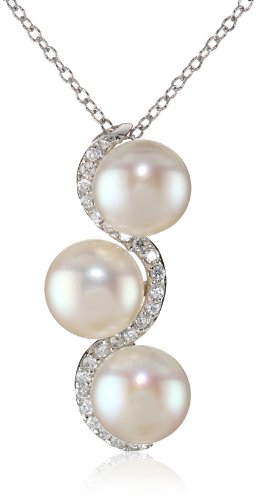 BELLA PEARL "TRILOGY" STERLING SILVER, CUBIC ZIRCONIA, AND PEARL PENDANT NECKLACE, 19"